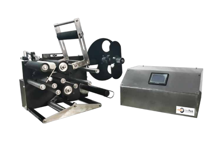 [/vc_column][/vc_row][vc_row][vc_column]This Semi Automatic Labelling Machine can be used to apply labels to cylindrical and square bottles, jars, and other containers.